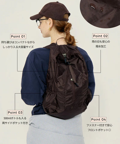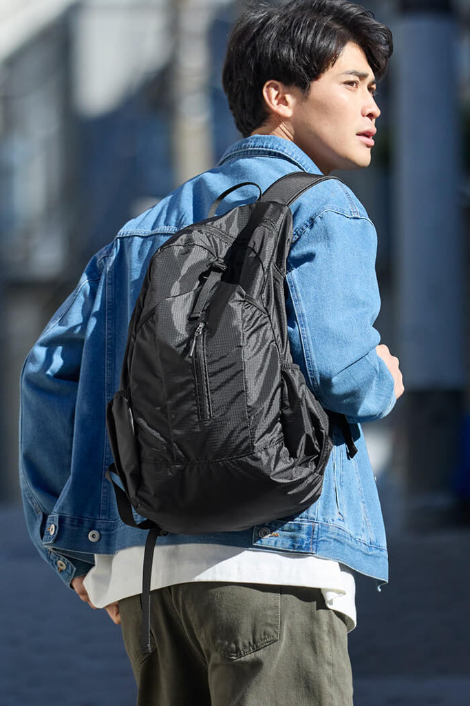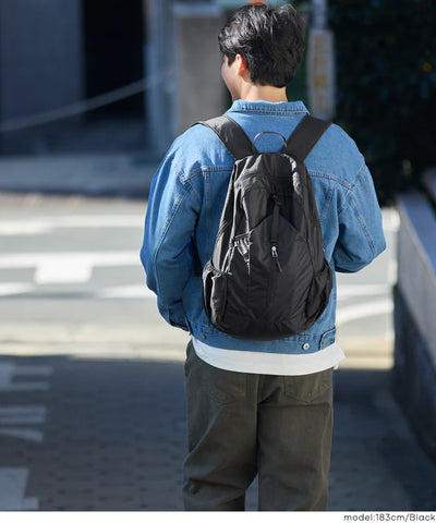 極致輕便與高收納性:採用可摺疊收納(Pocketable)設計,展開即是容量充足的後背包,摺疊後僅約手掌大小,方便放入行李箱或隨身包中,作為預備包、購物袋或登機包使用。
