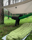 Because of its quilt shape, it can be opened at any time and used as a sleeping quilt. If the temperature drops, the bottom can also be tied up and used as a sleeping bag.