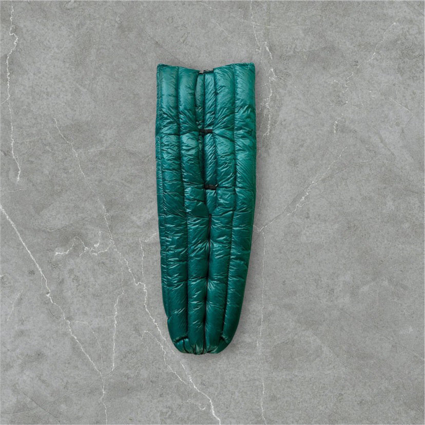 The sleeping quilt is also equipped with elastic bands, which can be fixed to the sleeping pad when fully unfolded.