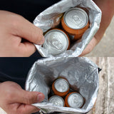 Comes with a roll top ice bag, enough to accommodate six cans of soda and a small amount of ice (measured by the owner: it can fit six cans of soda + 6 packs of paper-wrapped drinks)
